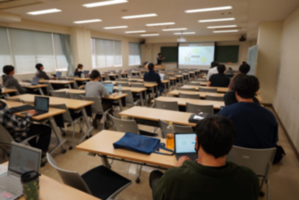 1~3年生も他の学類生も参加でき、途中の入退室や質問も可能です。4年生の皆さま、発表お疲れさまでした!